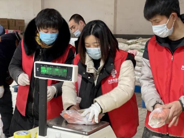 商貿(mào)公司嚴(yán)格執(zhí)行生產(chǎn)、物流、商品全鏈條的防疫消殺流程,保證人、車、物的防疫安全。特殊時(shí)期,居民為減少外出次數(shù),一次性采購量較大,為此,公司加大產(chǎn)品供應(yīng)力度,凌晨5點(diǎn)滿載蔬菜的貨車就陸續(xù)抵達(dá)南開區(qū)分倉,7點(diǎn)公司員工到崗對(duì)蔬菜進(jìn)行分揀、打包、稱重,9點(diǎn)新鮮、充足的蔬菜準(zhǔn)時(shí)到達(dá)各保供點(diǎn)位?;A(chǔ)民生食品一應(yīng)俱全,保證各點(diǎn)位供應(yīng)不脫銷、不斷貨,便民、貼心的服務(wù)得到了周圍居民的一致好評(píng)。“食品集團(tuán)的保供點(diǎn)位解決了我們?nèi)济贾?,我們這小區(qū)老年人多,給我們帶來了便捷,小伙子們不怕麻煩,耐心為我們服務(wù),讓我們心里很踏實(shí)。”居民李大爺拎著剛買完的新鮮蔬菜安心的說道。