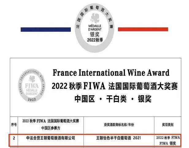 日前,2022秋季FIWA法國國際葡萄酒大獎賽中國區(qū)獲獎酒款名單發(fā)布,王朝旗下王朝七年藏釀品第二代干紅葡萄酒獻(xiàn)禮版(2013)、王朝怡色半干白葡萄酒(2021)兩款核心產(chǎn)品分別斬獲金、銀兩項(xiàng)大獎。獎項(xiàng)的獲得不僅代表國際上對王朝產(chǎn)品品質(zhì)的認(rèn)可,更提振了公司士氣,堅定了發(fā)展信心。